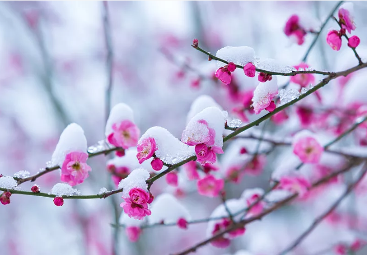 實(shí)際上,梅花總是開在冬春交替、乍暖還寒的時(shí)刻。在北方地區(qū),臨近春分時(shí)節(jié),大地一片蒼茫的時(shí)候,梅花帶來最早的春日氣息。