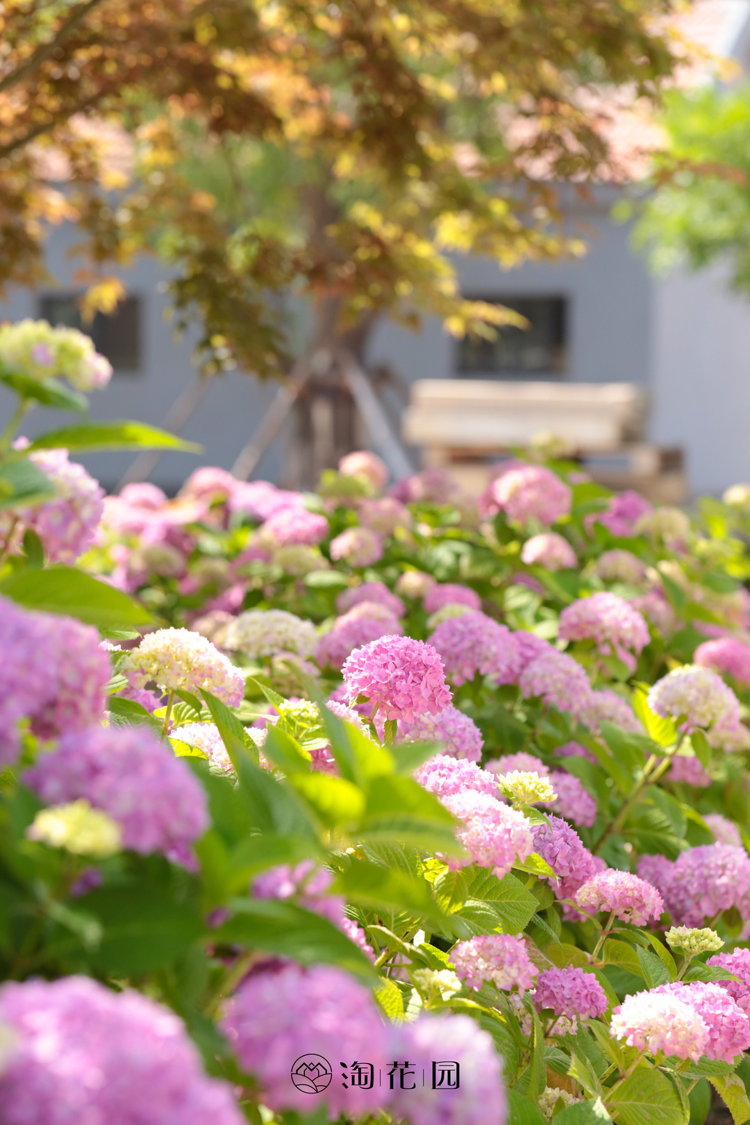 還有拉長的樹蔭,盛開的繡球。